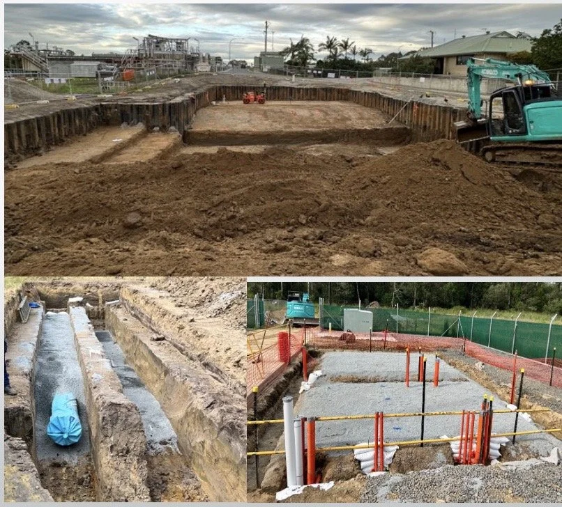 Ongoing works at the Loganholme WWTP bypass include complex precast pit and chamber installations using a 120T crane, highlighting our capability in heavy civil works and stormwater infrastructure. These projects reflect our team's strength in planning, coordination, and technical execution—delivering reliable outcomes for public utilities and private clients alike.
